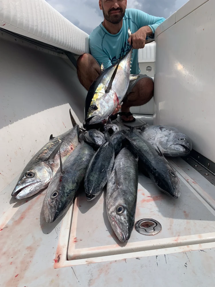 A nice blackfin tuna, several kingfish and Bonita