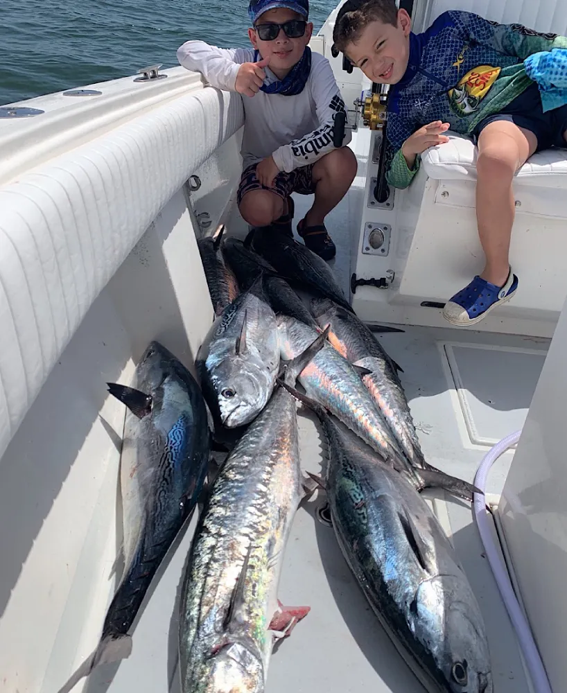 Young anglers with a great catch of kingfish and Bonita